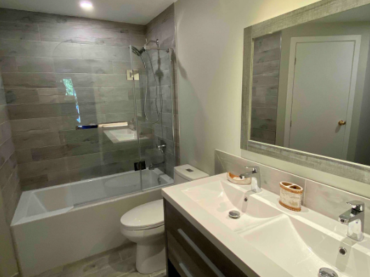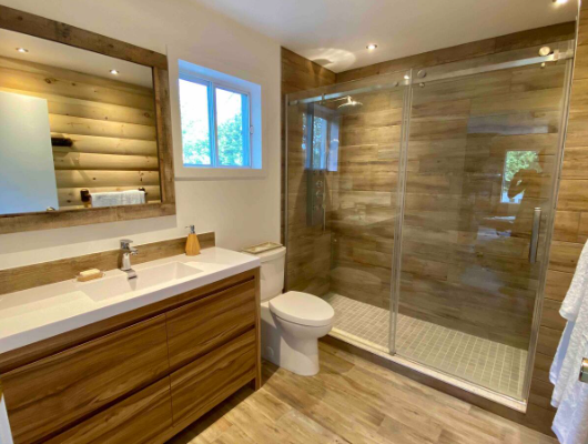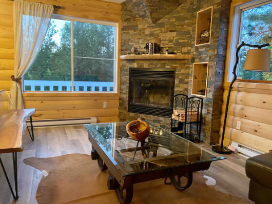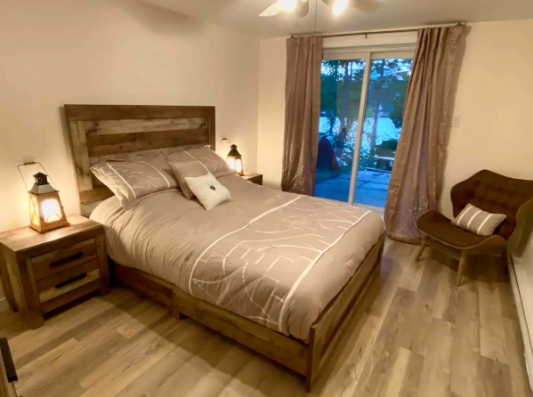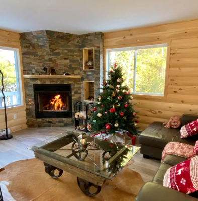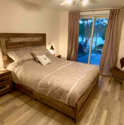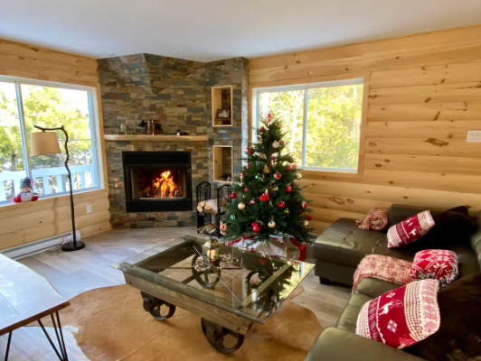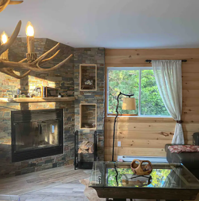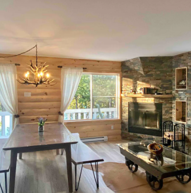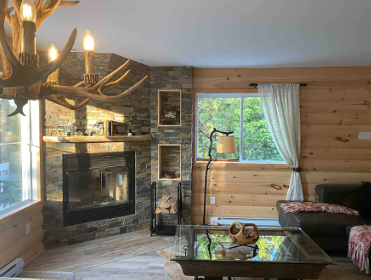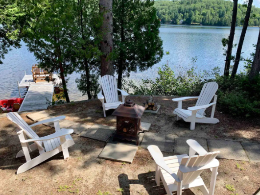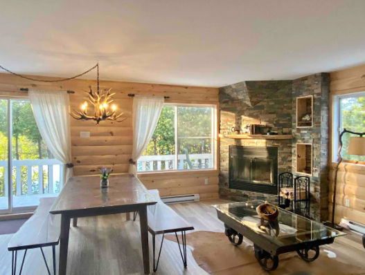 Renovated sunny 3 bedroom cottage on a crystal clear lake is perfect for a family getaway! The large backyard makes it a great place to relax and enjoy the tranquillity of a home in the woods with a fantastic view of Lac Brûlé. Spend your days on the water swimming, paddle boarding, pedaling, or skiing, racket walking during winter. Relax in an outdoor SPA and Sauna, enjoy quiet nights by the fireplace inside or outside under the stars. Located in Chertsey in the Lanaudière region, 1hr from Montreal.