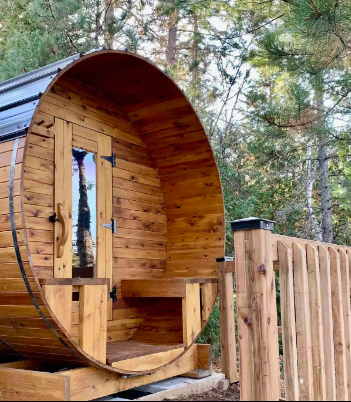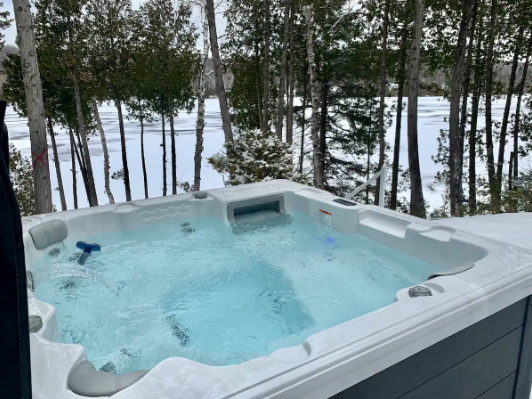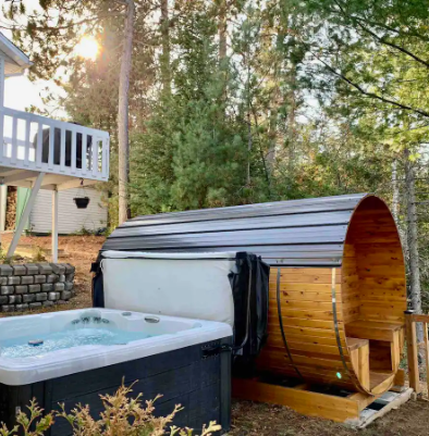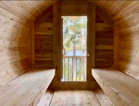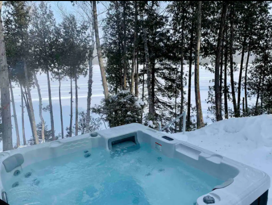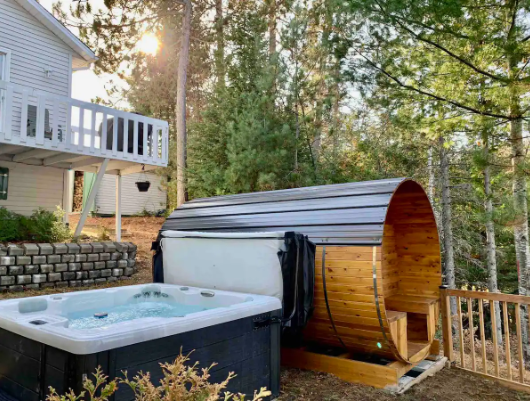 Enjoy a large (6 people) SPA located outside with a fantastic view of the lake along with a new large barrel SAUNA (8 people) (installed November 2022) A perfect retreat all year around!